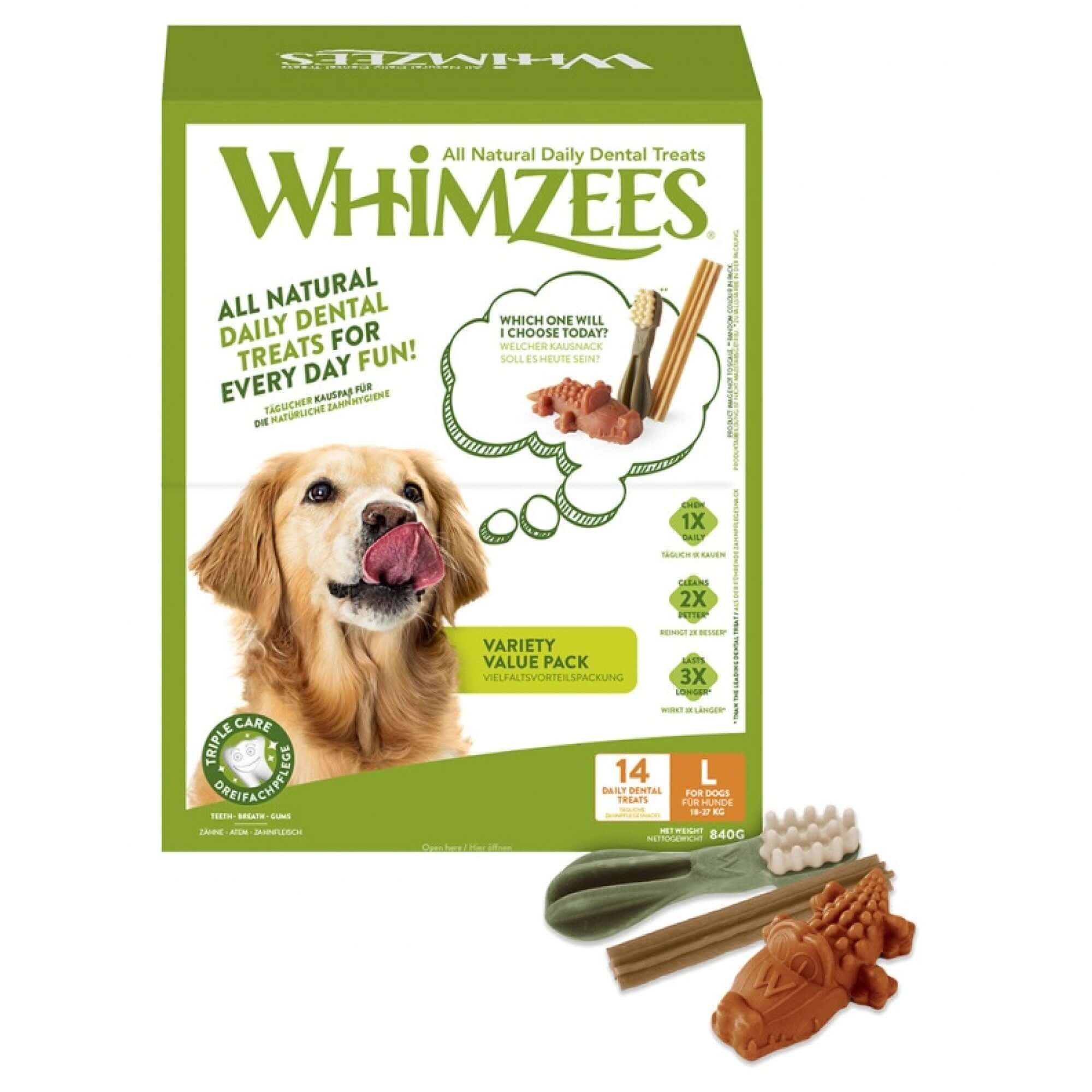 Whimzees Variety Valuebox Large 14 stuks Gezonde tandverzorging met Whimzees Variety Valuebox Large 14 stuks! Whimzees maakt tandenpoetsen leuk én...