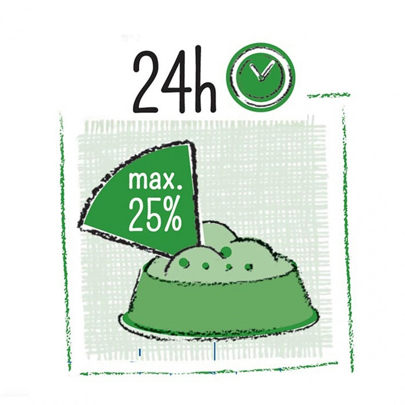 Maximum 20% van het dagelijkse menu. Geef altijd onbeperkt vers drinkwater. Product droog, koel en donker bewaren.